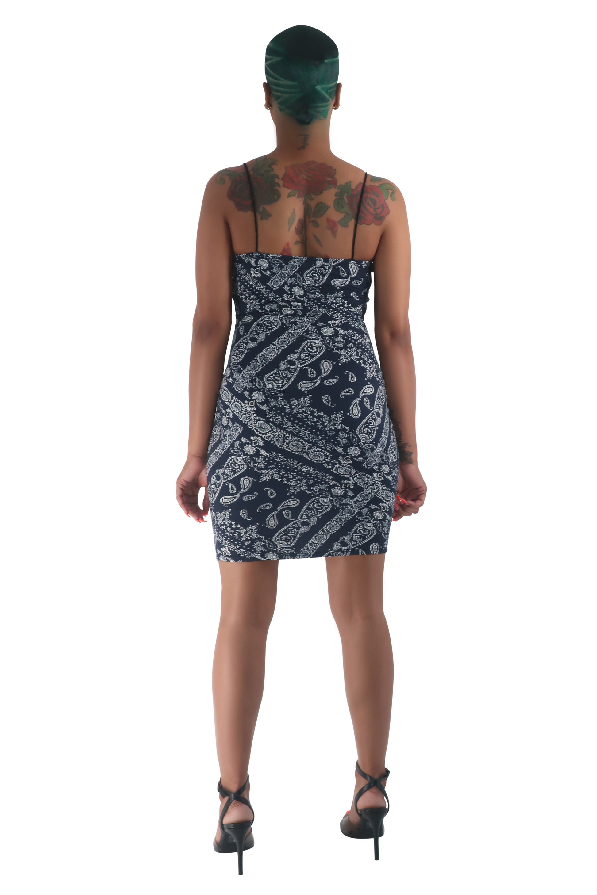 Navy Bandana Midi Bodycon Dress